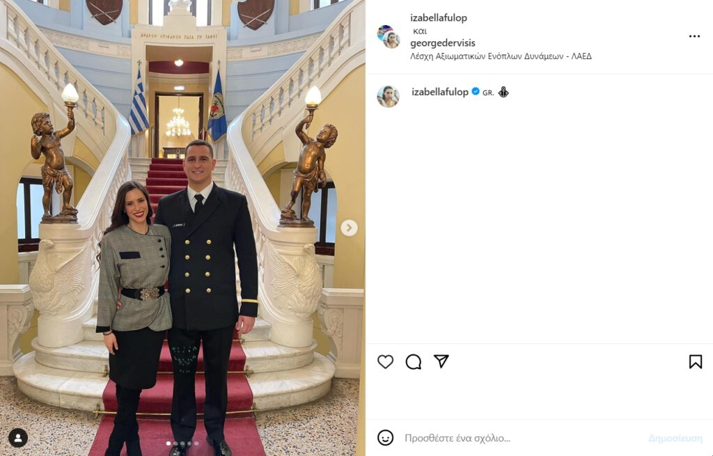 Ωστόσο, η Ιζαμπέλα Φούλοπ βρέθηκε στο πλευρό του συντρόφου της, Γιώργου Δερβίση και μάλιστα δημοσίευσε στον προσωπικό της λογαριασμό στο Instagram φωτογραφίες από την ορκωμοσία.