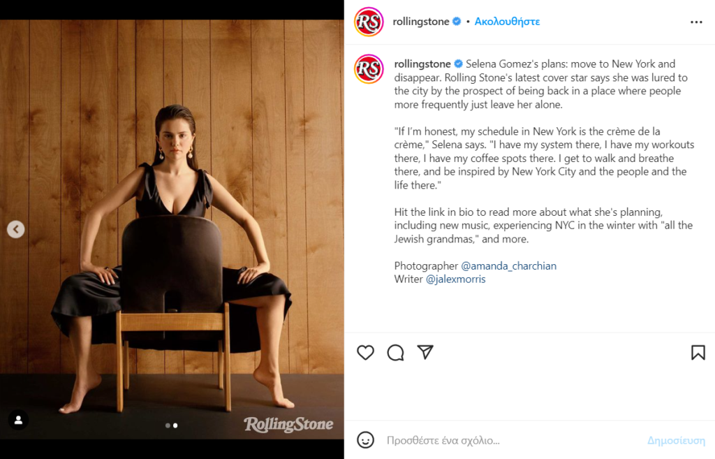 Στο εξώφυλλο του περιοδικού Rolling Stone πόζαρε η Selena Gomez και παράλληλα παραχώρησε μια άκρως αποκαλυπτική συνέντευξη με αφορμή το νέο ντοκιμαντέρ της “Selena Gomez: My mind & Me“, για την δική της μάχη με τις ψυχικές ασθένειες.