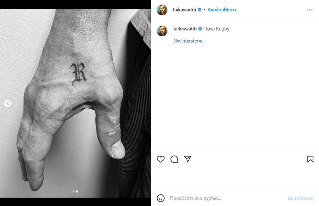 «Αγαπώ το ράγκμπι», έγραψε ο Waititi στη λεζάντα της ανάρτησής του, με τους διαδικτυακούς του φίλους να τον ρωτούν και εκείνοι με ανάλογο χιούμορ γράφοντάς του: «Rugby Ora?».