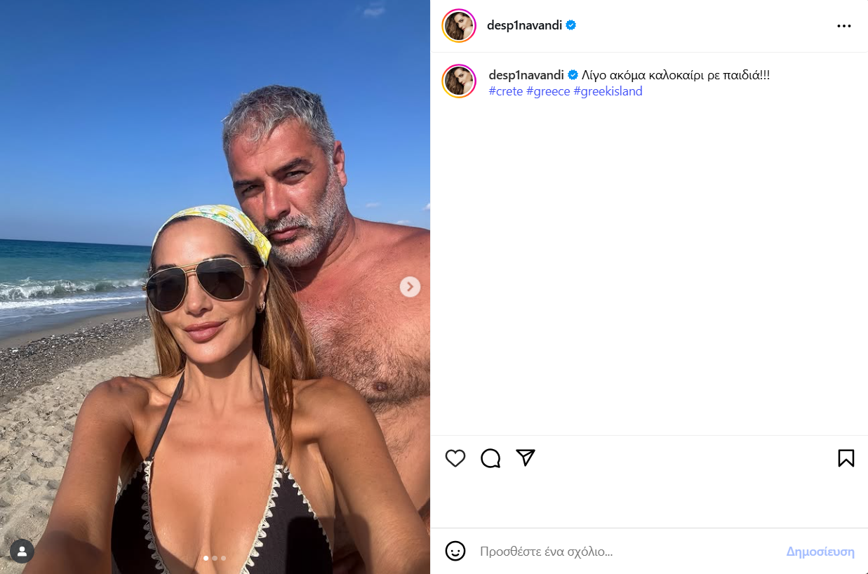 “Λίγο ακόμα καλοκαίρι ρε παιδιά” έγραψε η Δέσποινα Βανδή στη λεζάντα της ανάρτησής της.