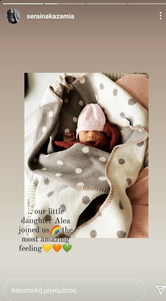 Η Σεράινα μας έδειξε το προσωπάκι της νεογέννητης κορούλας της, ενώ παράλληλα την απαθανάτισε αγκαλιά με τον σύζυγό της.