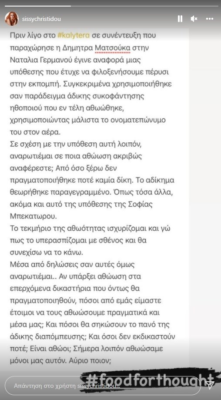 Όσα είπε η Δήμητρα Ματσούκα προκάλεσαν την αντίδραση της Σίσσυς Χρηστίδου, η οποία πέρσι είχε φιλοξενεί την συγκεκριμένη καταγγελία στην εκπομπή της.