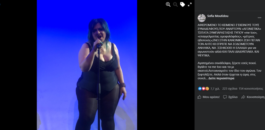 Με τους συναδέλφους της, που βγαίνουν και στηρίζουν τα θύματα δημόσια, αλλά δε μιλούν για όσα γνωρίζουν τα έβαλε η Σοφία Μουτίδου.