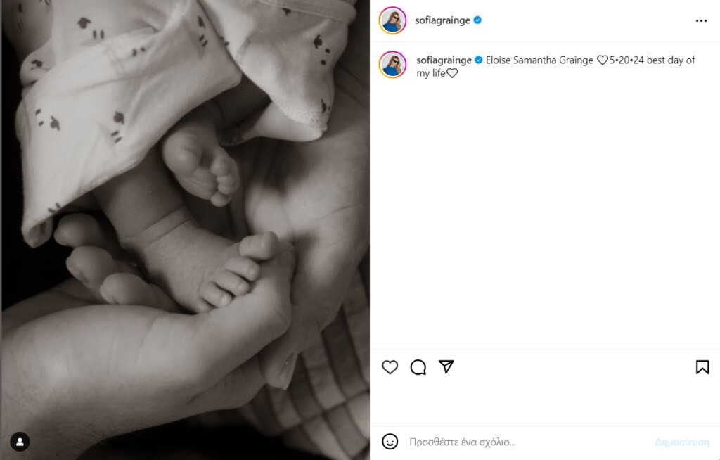 Μάλιστα, την ευχάριστη είδηση έκανε γνωστή η Sofia, μέσα από τον προσωπικό της λογαριασμό στο Instagram, δημοσιεύοντας μια φωτογραφία, η οποία απεικονίζει τα ποδαράκια της νεογέννητης κόρης της.