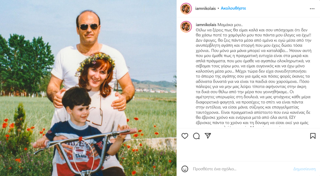 Ενώ το απόγευμα της Τρίτης 7 Ιουνίου, ο Σπύρος Νικολαΐδης έκανε μια δημοσίευση στον προσωπικό του λογαριασμό στο Instagram μετά το θάνατο της μητέρας του και “ράγισε” καρδιές.