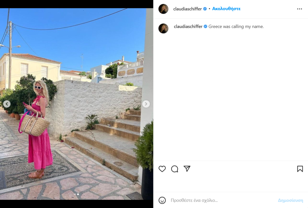 Πιο συγκεκριμένα, ανάμεσα στις διάσημες προσωπικότητες που επισκέφτηκαν την Ελλάδα για τις καλοκαιρινές τους διακοπές είναι και η Claudia Schiffer.