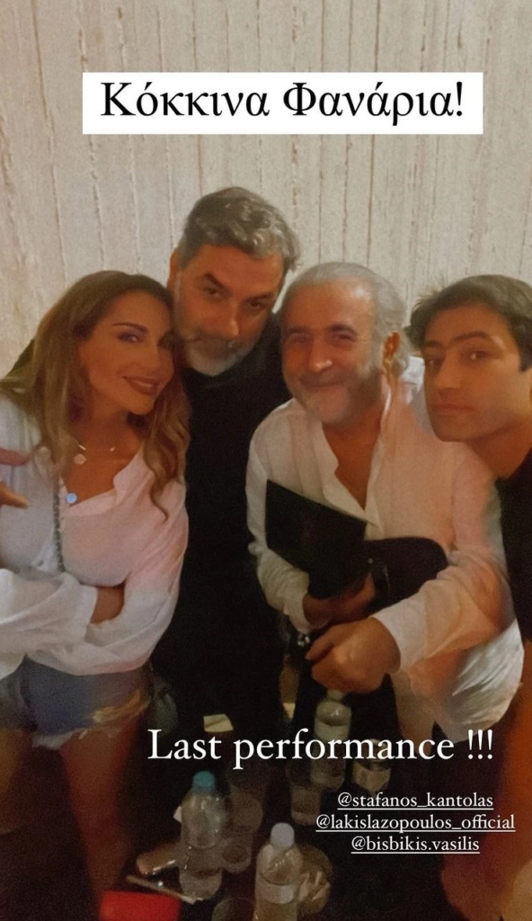Αυτή τη φορά και συγκεκριμένα το βράδυ της Κυριακής 19 Ιουνίου, η τραγουδίστρια βρέθηκε στο θέατρο “Cartel Τεχνοχώρος” για την παράσταση «Κόκκινα φανάρια» του Βασίλη Μπισμπίκη, η οποία έριξε αυλαία.