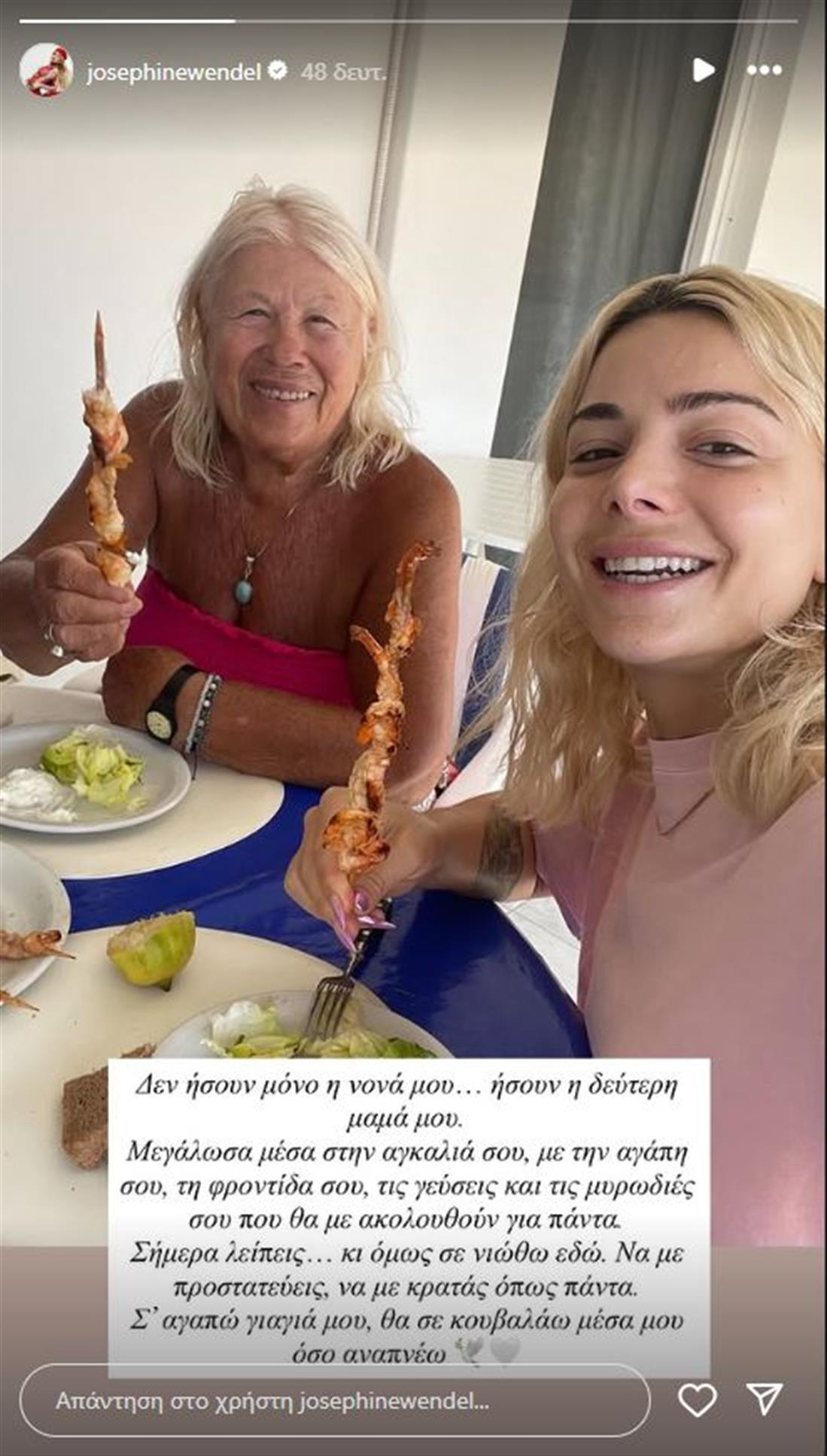 Ωστόσο, η Ζόζεφιν μέσα από μια ανάρτηση στον προσωπικό της λογαριασμό στο Instagram θέλησε να αποχαιρετήσει τη γιαγιά της και νονά της.