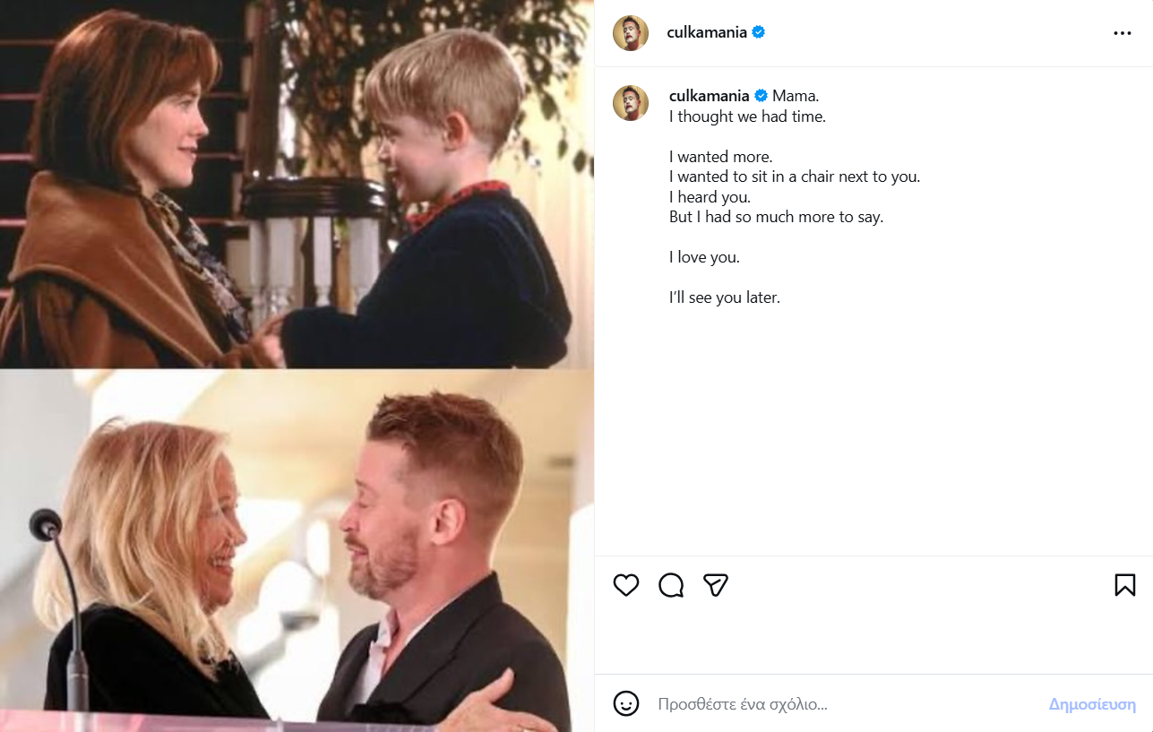 Μάλιστα, ο Macaulay Culkin αποχαιρέτησε δημόσια την Catherine O’Hara, με ανάρτησή του στο Instagram.