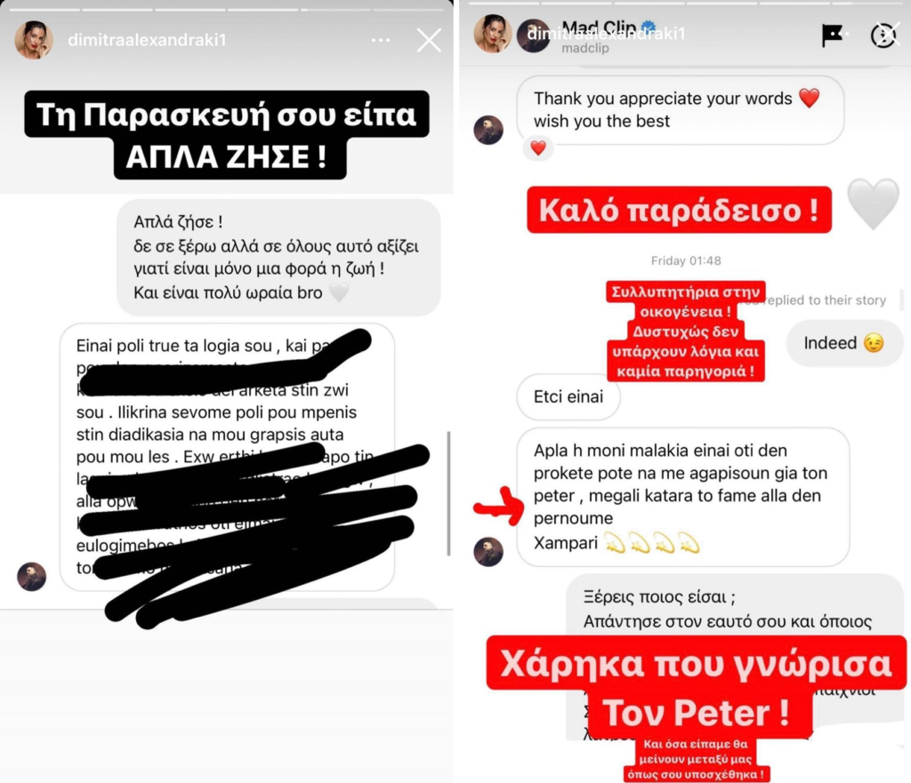 «Την Παρασκευή σου είπα απλά ζήσε! Καλό παράδεισο! Συλλυπητήρια στην οικογένεια! Δυστυχώς δεν υπάρχουν λόγια και καμιά παρηγοριά! Χάρηκα που γνώρισε τον Peter! Και όσα είπαμε θα μείνουν μεταξύ μας όπως σου υποσχέθηκα!»