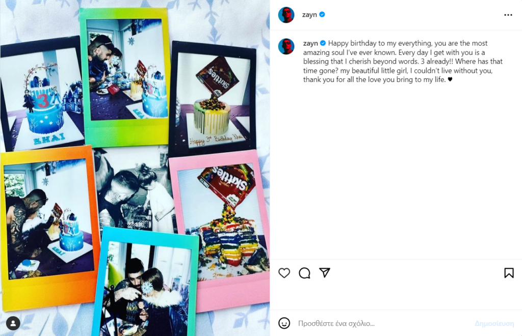 «Χρόνια πολλά στα πάντα μου, είσαι η πιο καταπληκτική ψυχή που έχω γνωρίσει ποτέ», έγραψε ο Malik ανεβάζοντας κολάζ από polaroid φωτογραφίες και συμπλήρωσε: