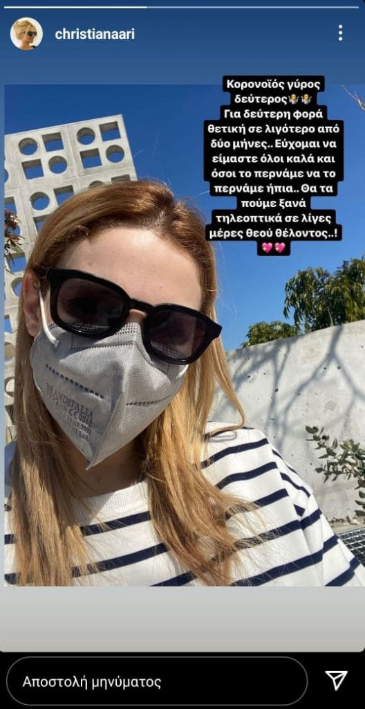 Την αποκάλυψη πως διαγνώστηκε για 2η φορά θετική στον κορονοϊό, δύο μήνες μετά την πρώτη νόσησή της, έκανε η Χριστιάνα Αριστοτέλους.