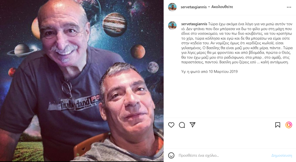 Υγ: η φωτό από 10 Μαρτίου 2019» έγραψε ο Γιάννης Σερβετάς στην λεζάντα του post του.