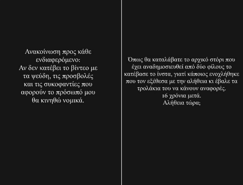 Ωστόσο, από την πλευρά της, η Μαρία Ιακώβου με αναρτήσεις της αναρωτιέται γιατί τόσα ψέματα και τόση σκ@τοψυχιά, τόσα χρόνια μετά ενώ τονίζει ότι αν δεν κατέβει το βίντεο με όσα λέει ο ράπερ, θα κινηθεί νομικά.