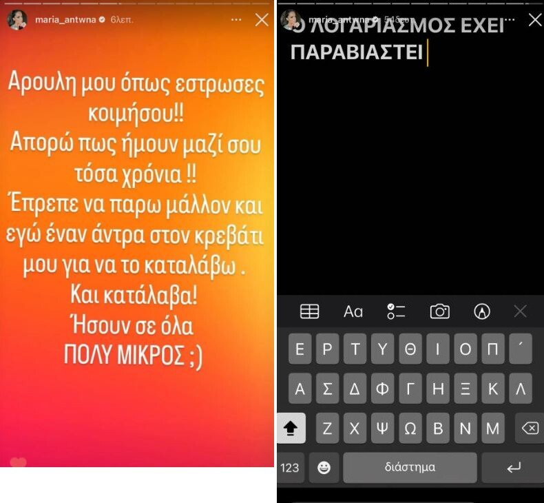 Συγκεκριμένα άγνωστοι παραβίασαν τον λογαριασμό της στο instagram και ανέβασαν ένα μήνυμα για τον πρώην σύντροφό της, Άρη Σοϊλέδη.