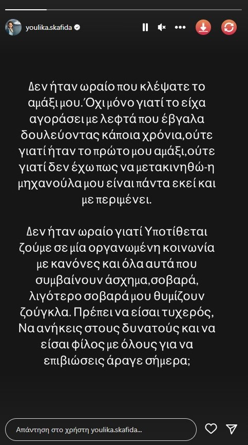 Θύμα κλοπής η Γιούλικα Σκαφιδά! Η ανάρτησή της