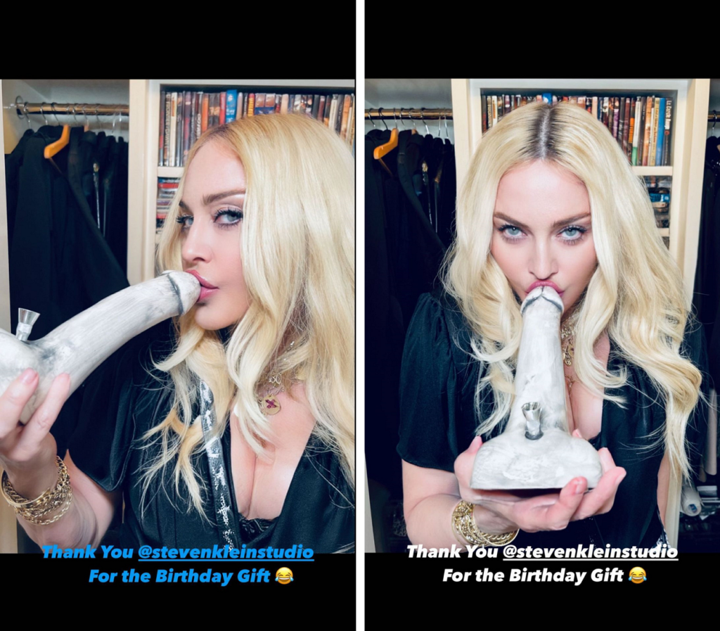 Ενώ ένα «πικάντικο» δώρο που δέχτηκε η βασίλισσα της pop από τον φωτογράφο Steven Klein, ήταν ένα Bong καπνίσματος σε σχήμα… ανδρικού μορίου!