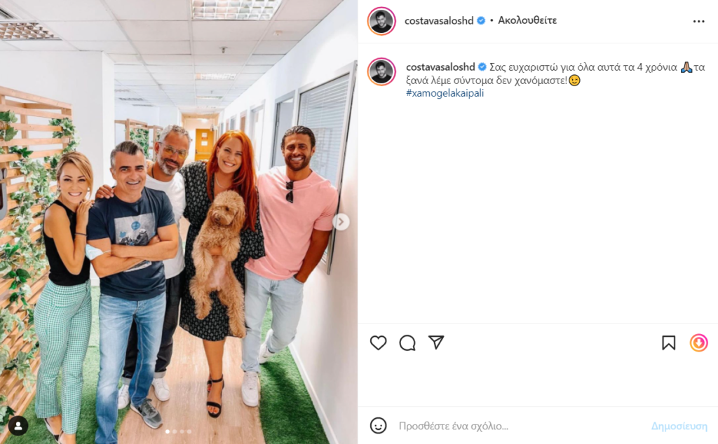 Ενώ λίγες ώρες μετά το φινάλε της εκπομπής, ο Κωνσταντίνος μέσα από τον προσωπικό του λογαριασμό στο Instagram, θέλησε να πει ένα ακόμα «αντίο» στους συνεργάτες του και να τους ευχαριστήσει δημόσια.