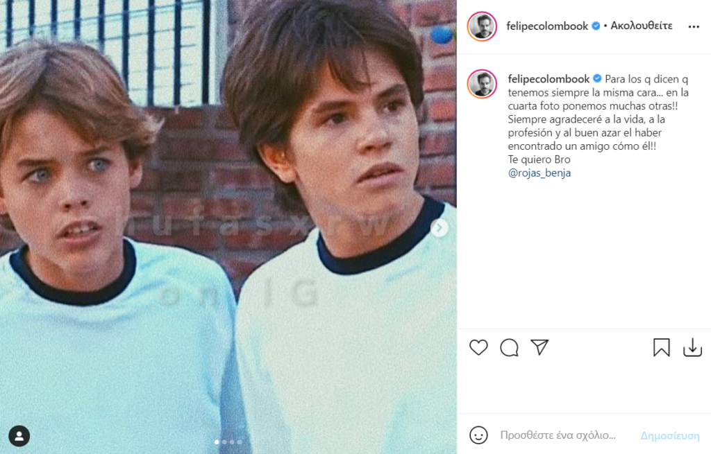 “Για αυτούς που λένε ότι έχουμε πάντα το ίδιο πρόσωπο… Στην τέταρτη φωτογραφία βάζουμε πολλούς άλλους! Πάντα θα ευχαριστώ τη ζωή, το επάγγελμα και την καλή ευκαιρία που έχω βρει ένα φίλο σαν αυτόν! Σ’ αγαπώ αδερφέ @rojas_benja”