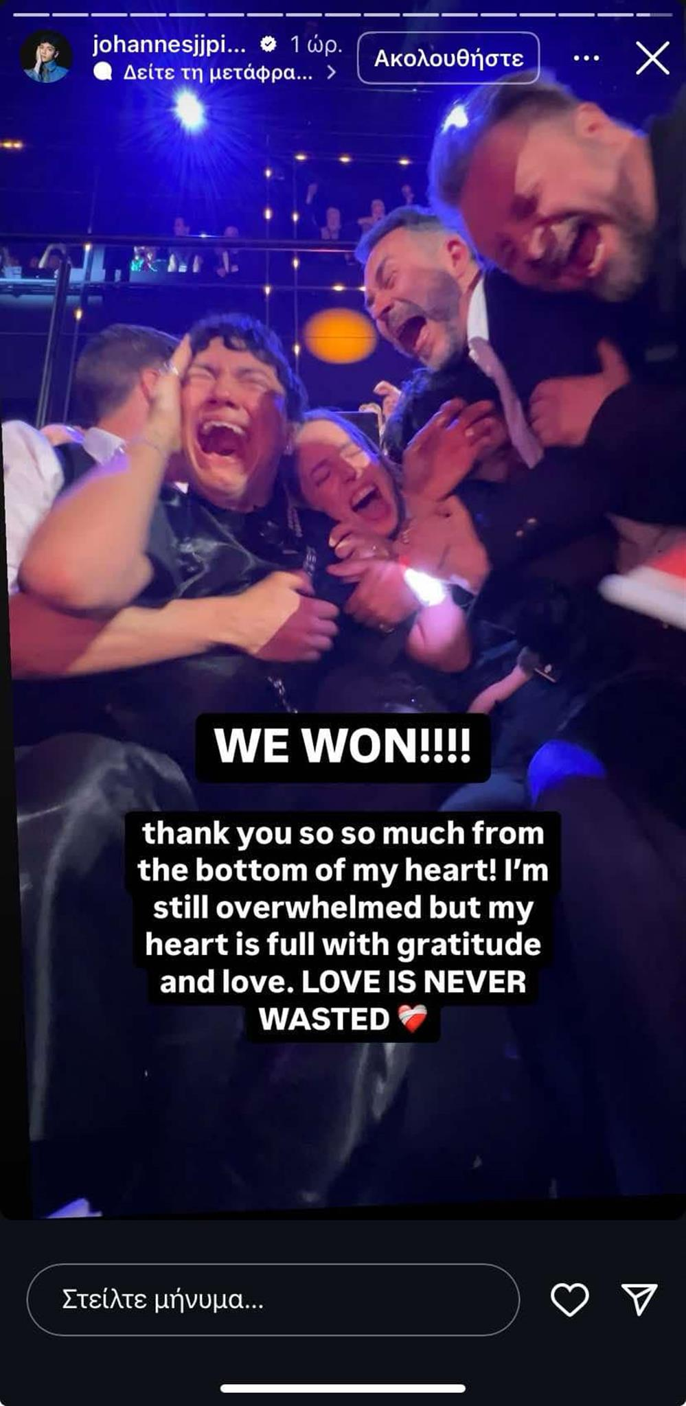 «Κερδίσαμε! Σας ευχαριστώ τόσο πολύ από τα βάθη της καρδιάς μου. Είναι ακόμα συγκινημένος και η καρδιά μου είναι γεμάτη με ευγνωμοσύνη και αγάπη. Η αγάπη, δεν πάει ποτέ χαμένη», έγραψε ο JJ στη λεζάντα της ανάρτησης της.