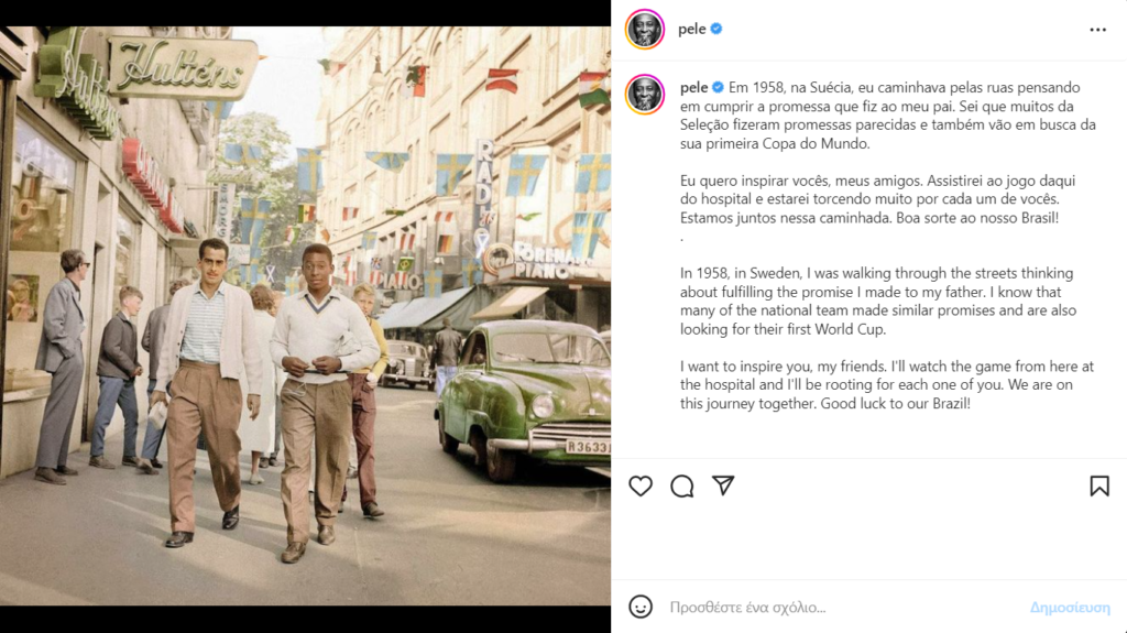 Να πούμε πως πριν τον αγώνα της Βραζιλίας με την Κορέα, ο Pele έκανε μια ανάρτηση μέσα από το νοσοκομείο, η οποία έγραφε: