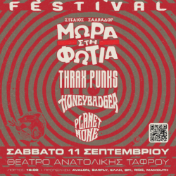 Όσοι δεν ήξεραν τους ΘΡΑΞ ΠΑΝΚC, στην περσινή εκδοχή του Chania Rock Festival, τους έμαθαν καλά! Θρακιώτικες μελωδίες με ηλεκτρικές κιθάρες αλλά και παραδοσιακά όργανα, ίσως η μουσική «απάντηση» της Θράκης στους VILLAGERS OF IOANNINA CITY. Οι εντυπώσεις που άφησαν ήταν εκπληκτικές και η νέα τους εμφάνιση ήταν δεδομένη από τη στιγμή που είχαν κατέβει από τη σκηνή…