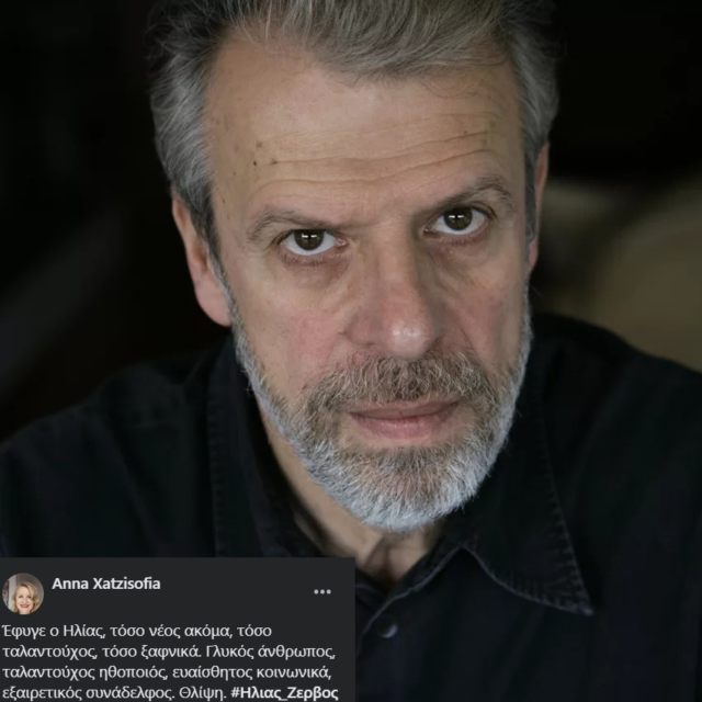 «Έφυγε ο Ηλίας, τόσο νέος ακόμα, τόσο ταλαντούχος, τόσο ξαφνικά. Γλυκός άνθρωπος, ταλαντούχος ηθοποιός, ευαίσθητος κοινωνικά, εξαιρετικός συνάδελφος. Θλίψη», έγραψε η Άννα Χατζησοφία.