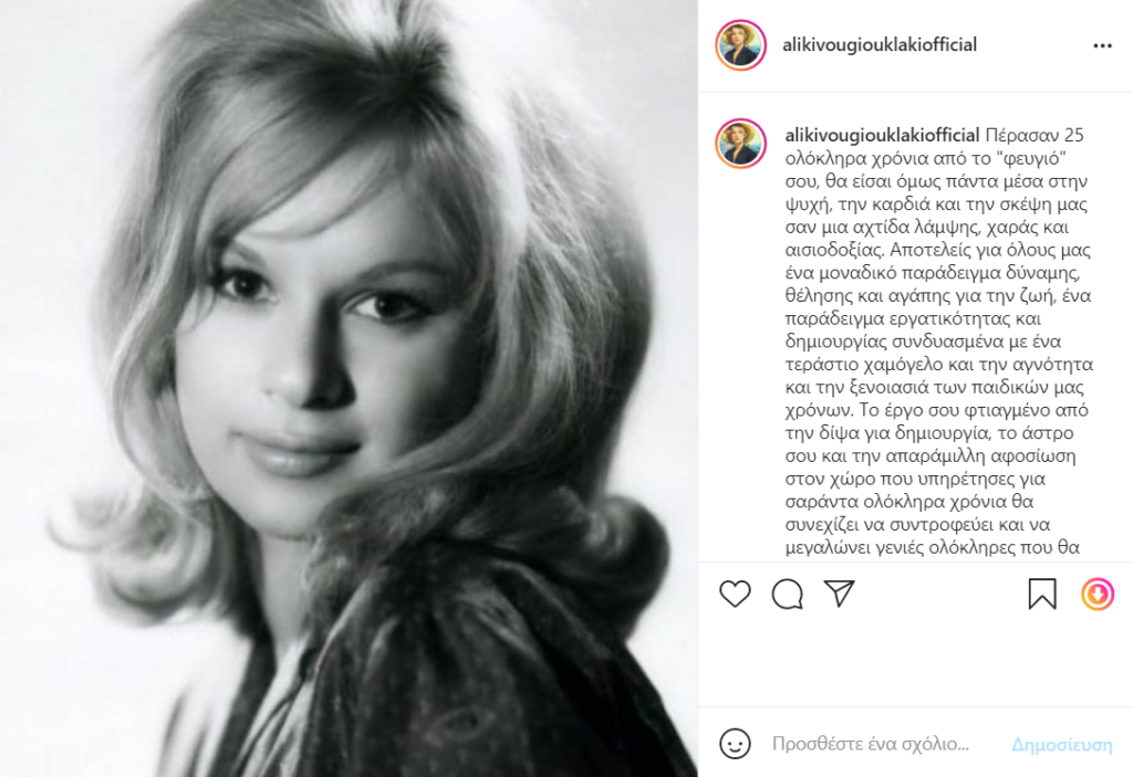 Έχουν περάσει 25 χρόνια από την ημέρα που η Αλίκη Βουγιουκλάκη έφυγε από τη ζωή, καθώς άφησε την τελευταία της πνοή στις 23 Ιουλίου του 1996 και ο θάνατός της προκάλεσε θλίψη σε όλη την Ελλάδα.