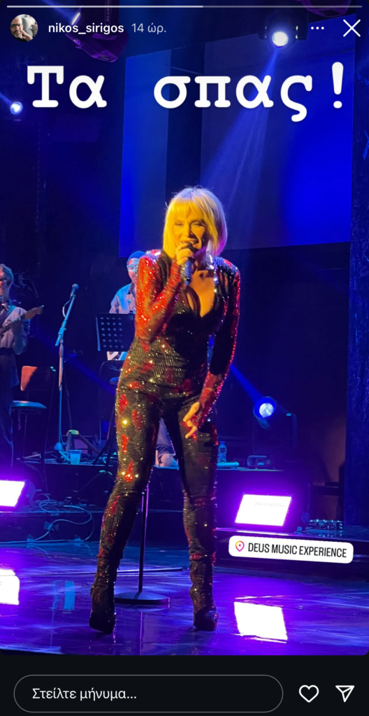 Μάλιστα, ο Νίκος Συρίγος κατά τη διάρκεια της βραδιάς φωτογράφισε την σύντροφό του επί σκηνής δημοσιεύοντας το σχετικό στιγμιότυπο στα social media.