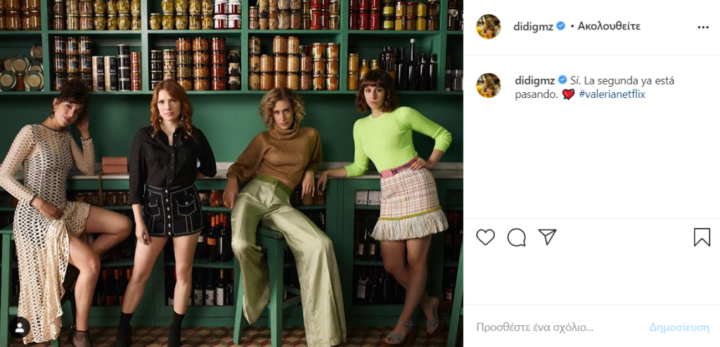 Μάλιστα, σε ανάρτηση του στο instagram το Netflix, σχολίασε: «Η Valeria άλλαξε την ομαδική φωτογραφία. Η δεύτερη σεζόν είναι ήδη στα γυρίσματα.» Την ίδια ανάρτηση έκανε και η πρωταγωνίστρια της σειράς, Diana Gómez, αναφέροντας: «Ναί. Το δεύτερο συμβαίνει ήδη».