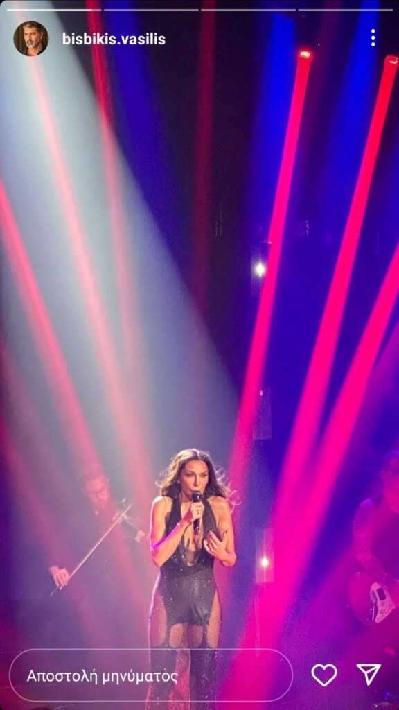 Ωστόσο, ο Βασίλης Μπισμπίκης απόλαυσε την σύντροφό του και στο φινάλε των εμφανίσεών της στο νυχτερινό κέντρο που τραγουδάει με τον Γιώργο Σαμπάνη και δημοσίευσε στα social media μία φωτογραφία από την στιγμή που την απολαμβάνει επί σκηνής.